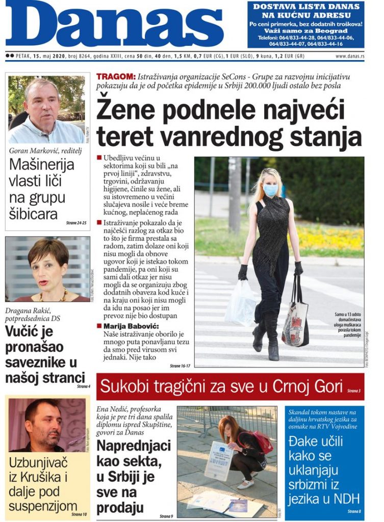 PRESEK – U Republici Srbiji je do 15 časova 15. maja registrovano ukupno 10.438 slučajeva zaraze koronavirusom.