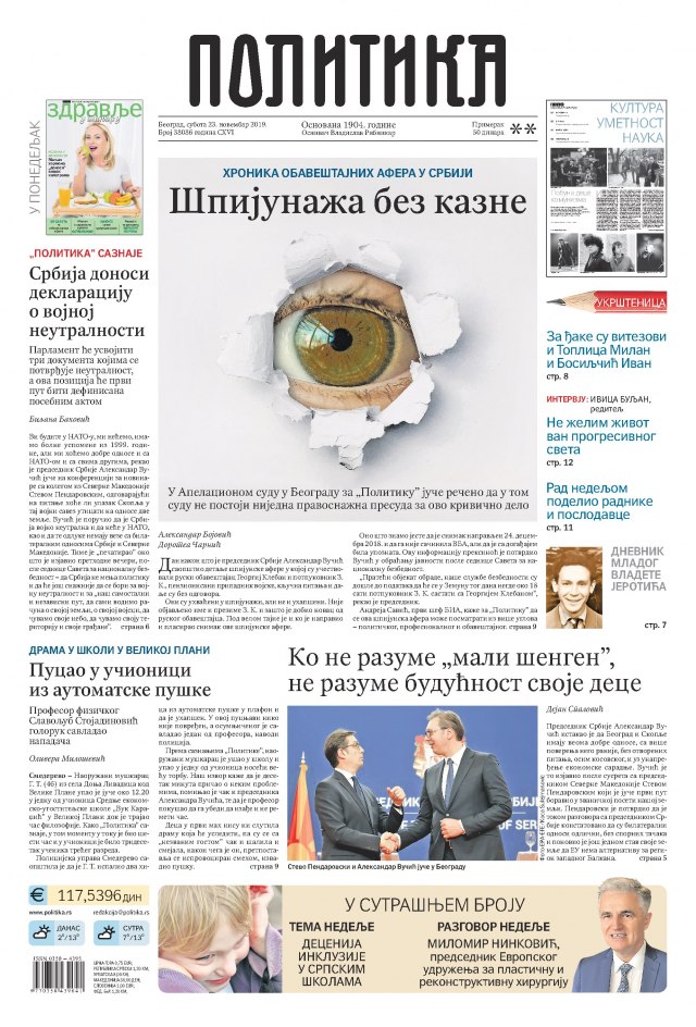 NASLOVNA STRANA AKTUELNOG BROJA NEDELJNIKA KOJI JE NA SVIM KIOSCIMA