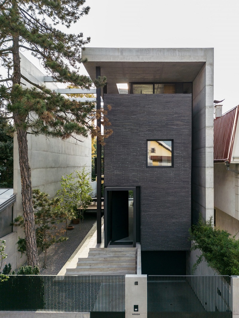 Kuća izgrađena prema projektu arhitekte Dejana Miljkovića nalazi se na Senjaku, u istorijsko-ambijentalnom delu Beograda, čiji je značaj prepoznat u istoriji arhitektonskog nasleđa grada. Projektovana je tako da objedinjuje funkciju porodičnog stanovanja na više nivoa, uzimajući u obzir malu površinu parcele i njeno maksimalno korišćenje u odnosu na urbanističke parametre i položaj građevinskih linija.