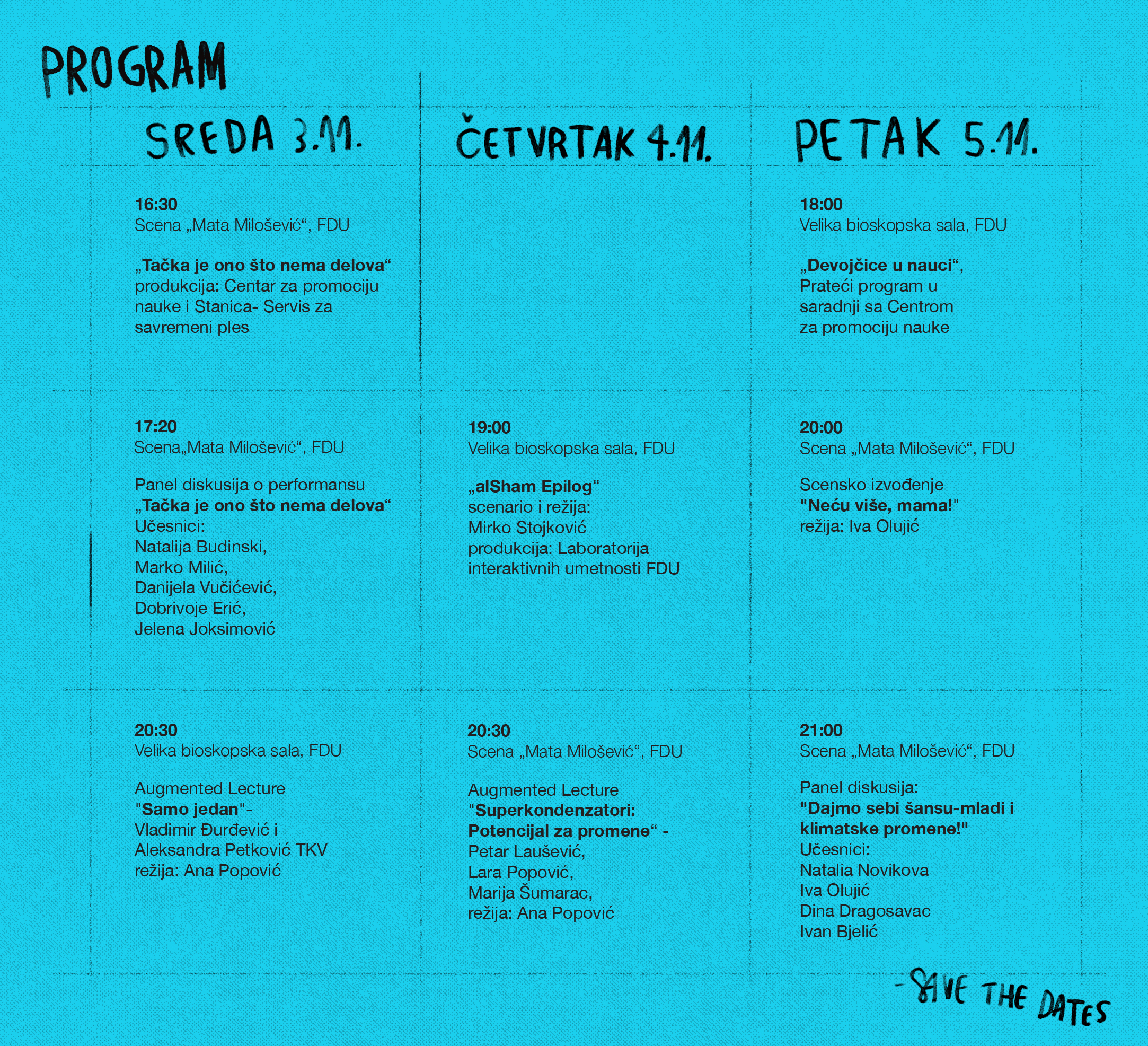 Svi programi u okviru festivala su besplatni, a kako biste obezbedili svoje mesto usled ograničenih kapaciteta, prijavite se putem linka:
