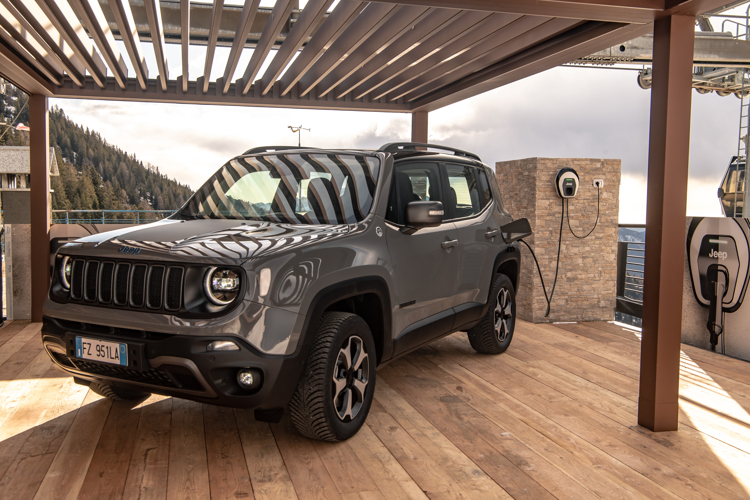 Nakon potpuno sigurnog i laganog uspona i spuštanja strmom padinom u električnom režimu rada, Jeep Renegade 4xe priključen je na stanicu za punjenje Easy Wallbox™ koja je instalirana pored gornje stanice za žičare, sa panoramskim pogledom na Alpe koji ostavlja bez daha.
