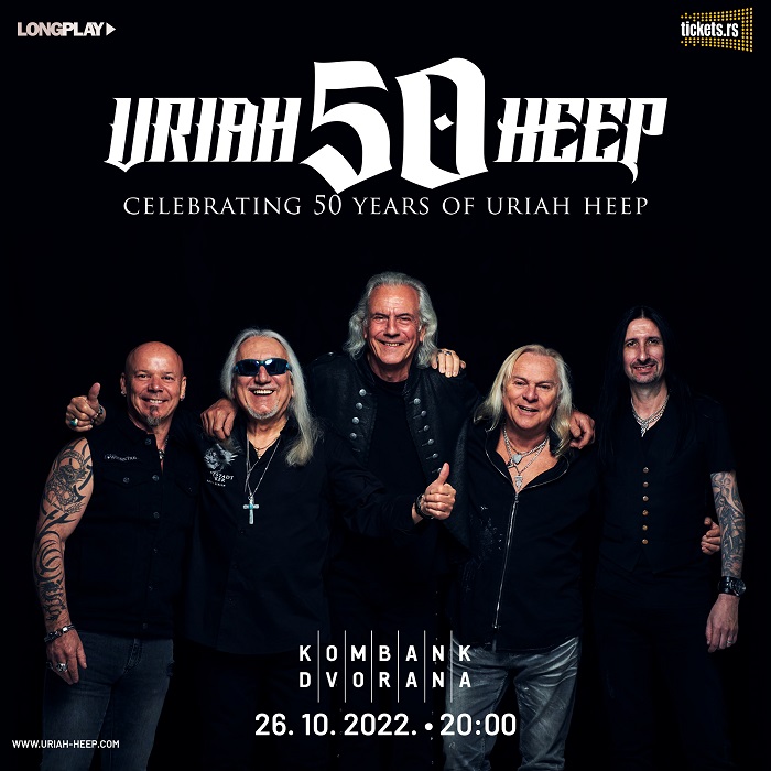 Jedna od najvećih hard-rok grupa svih vremena, Uriah Heep, u sklopu turneje na kojoj proslavlja 50 godina postojanja, održaće koncert u Kombank dvorani u Beogradu, 26. oktobra 2022. (20.00), u organizaciji promoterske kuće Long Play. Brojni ovdašnji njihovi ljubitelji svih generacija ponovo će moći da uživaju u nezaboravnim pesmama koje decenijama spadaju u rokenrol klasike – „Lady In Black“, „July Morning“, „Easy Livin“, „Sunrise“… Beogradskoj publici je još uvek u svežem sećanju spektakl koji je Uriah Heep priredio u februaru 2019. u Sava centru, a prethodno su posetioci zaječarske „Gitarijade“ svedočili njihovim briljantnim nastupima 2006. i 2016. Stariji zaljubljenici pamte njihov prvi beogradski koncert u hali Pionir, davne 1977, u najslavnijim danima benda.