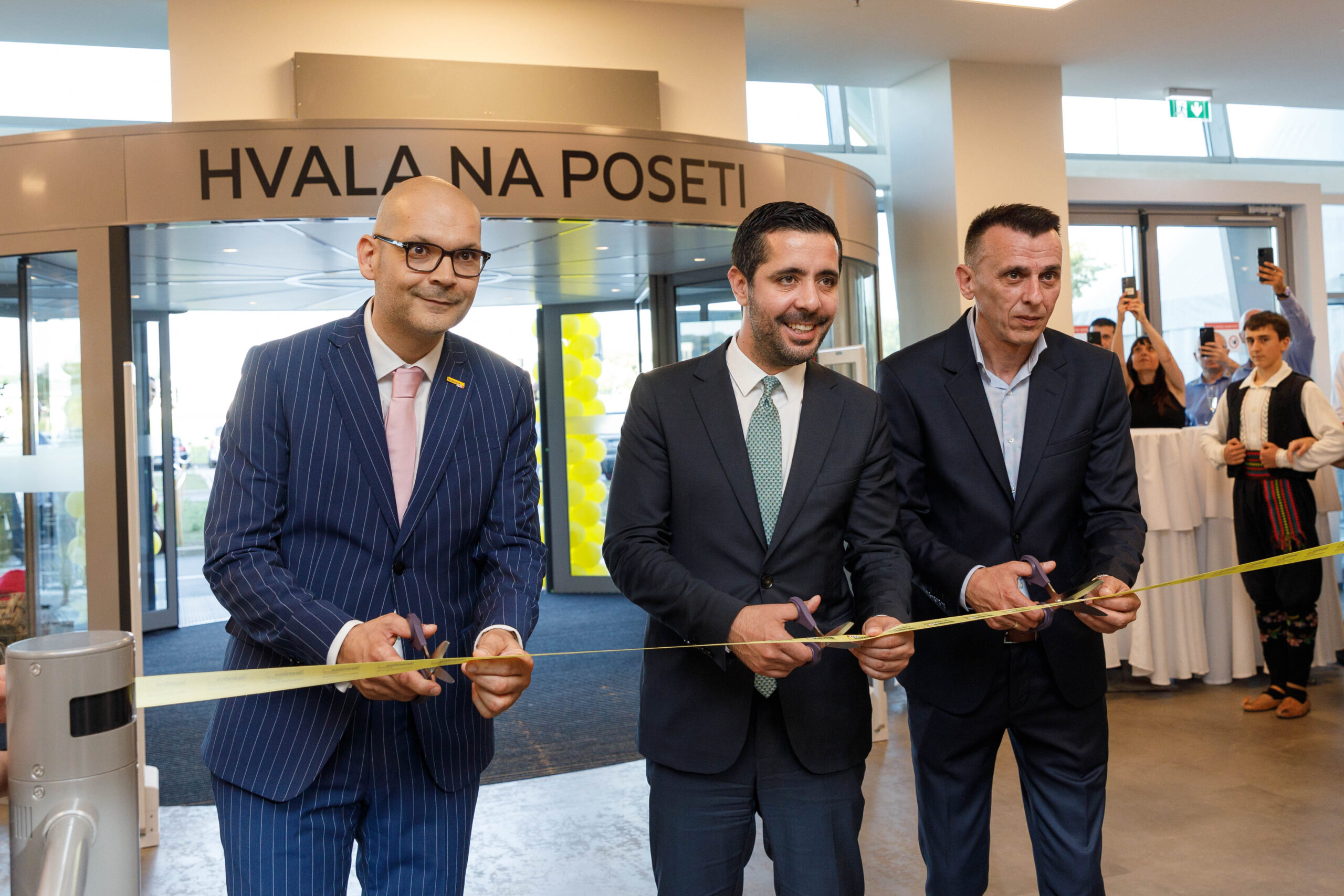 Ministar spoljne i unutrašnje trgovine u Vladi Republike Srbije Tomislav Momirović, direktor Lesnina S Aleksandar Pavićević i direktor GIGA International, Gerald Socher, svečano su otvorili prvi prodajni centar kompanije Lesnina XXXL u Beogradu.