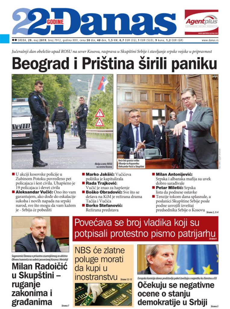 LIDERI SRBA S KOSOVA POZVALI NA PROTEST – Predstavnici Srba sa severa i Kancelarije za KiM istakli su da ni poslednja brutalna akcija Prištine neće oterati Srbe iz pokrajine.