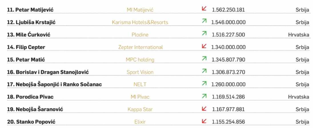15. Petar Matić (MPC holding) – 71.345.807.790 – Srbija