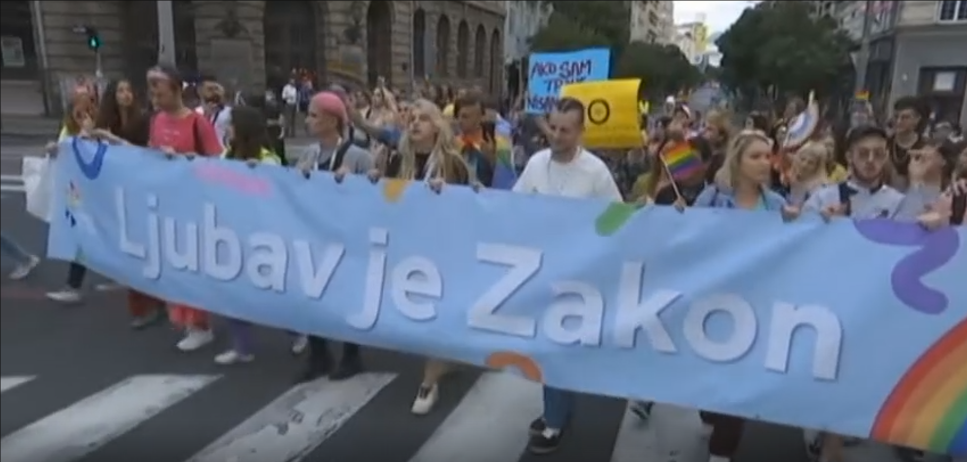 Na početku kolone razvijen je transparent na kom piše „Ljubav je zakon“ što je i naziv ovogodišnje Parade ponosa.