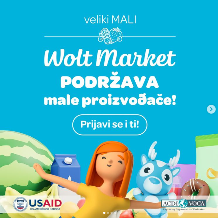 Mali proizvođači iz različitih regiona Srbije, u poslednjih godinu dana, našli su put do novih kupaca. Njihovih, oko 100 artikala nalaze se na Wolt Market on line prodavnici i zadobili su pažnju i poverenje mnogobrojnih građana u Beogradu, Novom Sadu i Nišu. Program „velikiMALI“ se sprovodi uz podršku Projekta „Velika mala privreda” koji finansira USAID, a realizuje ACDI/VOCA u saradnji sa Wolt Marketom.