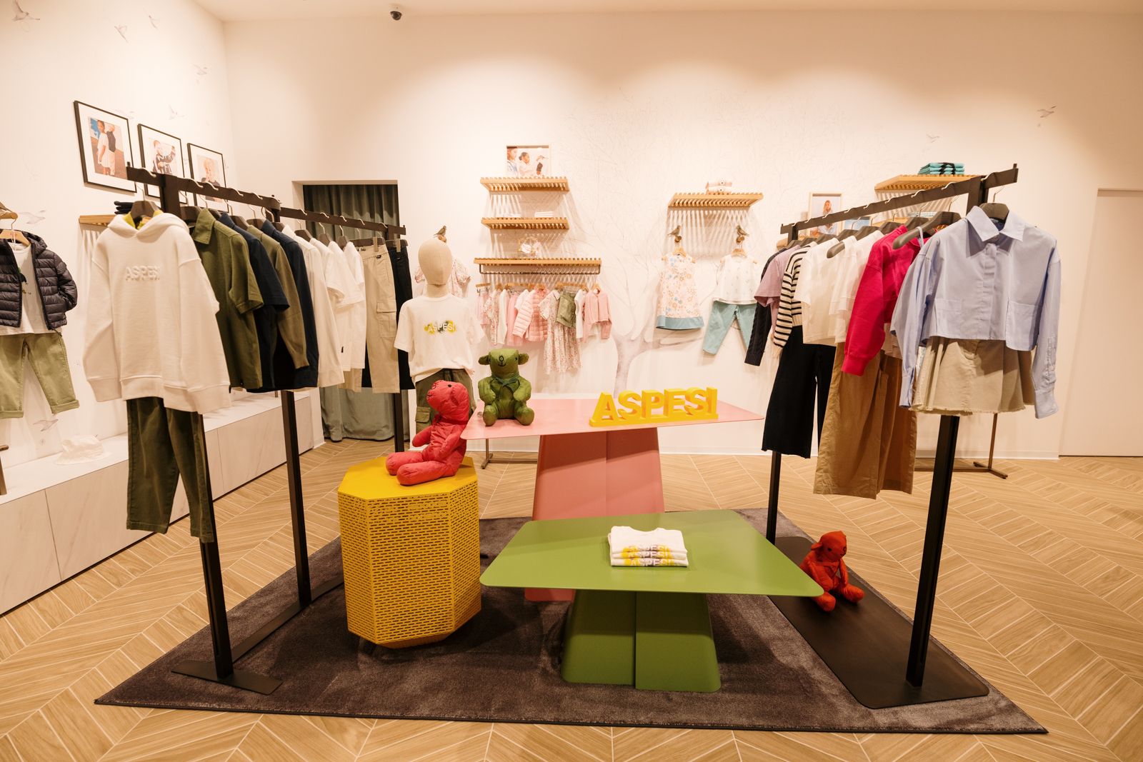 Prolećna odeća Teddi&Minou dizajnirana je za bebe od 0 do 36 meseci, a simbol brenda je mala mačka prepoznatljiva po simpatičnim siluetama sa šiljatim ušima. Za decu u uzrastu od 6 do 16 godina, namenjena je ASPESI dečja kolekcija koja odiše italijanskim minimalističkim, prepoznatljivim stilom.