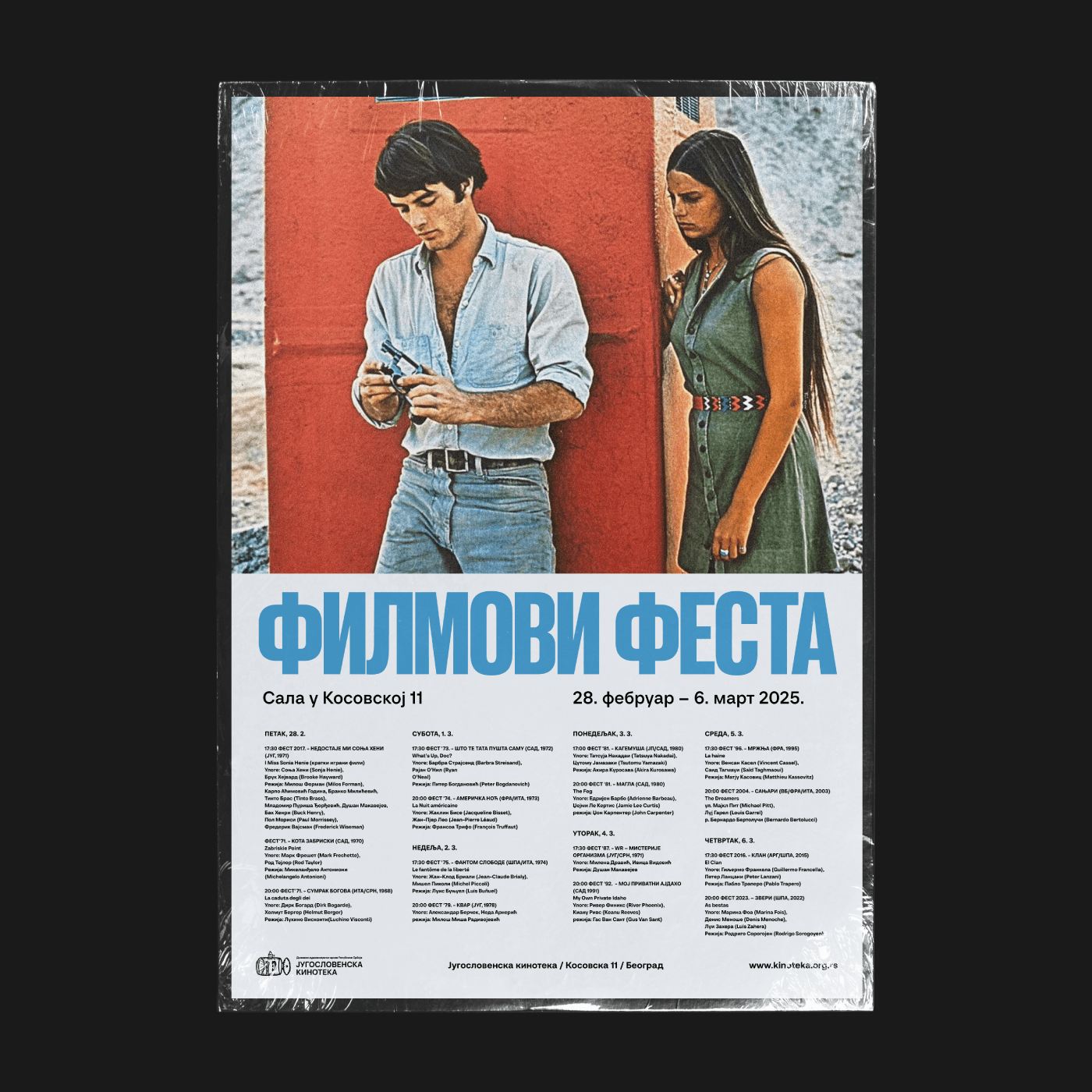Program „Filmovi Festa“ obradovaće publiku u sali u Kosovskoj ulici već od 28. februara i trajaće do 6. marta. Poslednjeg petka u februaru obično je počinjao beogradski Fest, koji ove godine neće biti održan u svom tradicionalnom terminu. Jugoslovenska kinoteka će ovim programom podsetiti na neka od najboljih ostvarenja prikazanih na našem najznačajnijem filmskom festivalu.