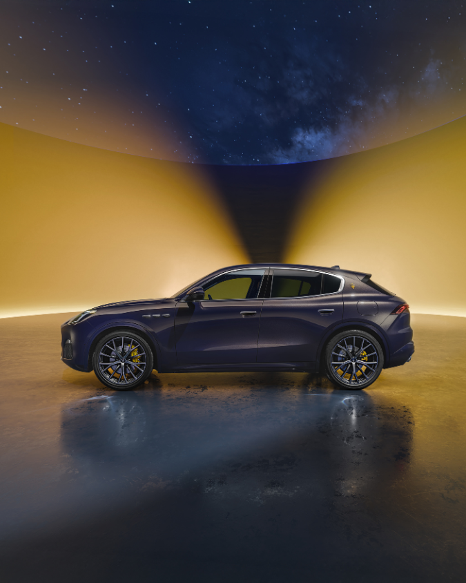 Oblikovan za one koji žele da se izdvoje, Grecale Lumina Blu donosi prepoznatljiv „večernji“ izgled kroz Night Interaction spoljašnju nijansu. Duboka, zavodljiva kombinacija, dolazi do izražaja naročito noći, pod svetlima grada, naglašavajući linije modela i njegov samouveren karakter. Ova limitirana serija od svega 200 jedinica, predstavlja Maseratijev omaž noćnoj eleganciji: spoj prefinjenosti, praktičnosti i odvažnog, ličnog izraza koji ga jasno odvaja od svega u svojoj klasi. Elegantnu siluetu dopunjuju 21-inčni Crio aluminijumske felne, žute kočione čeljusti i žuti Trozubac na C-stubu. Ovi elementi daju modelu jasnu sportsku notu koja se odlično uklapa sa njegovim luksuznim karakterom. Spoljašnji utisak dodatno zaokružuju Matrix LED farovi i zatamnjena zadnja stakla.