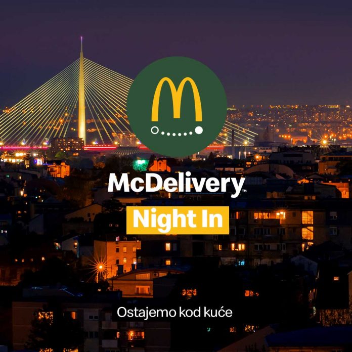 McDonald’s u Srbiji se po prvi put pridružuje globalnoj godišnjoj akciji, koja se dešava po treći put širom sveta, “McDelivery Night In” u četvrtak, 19. i petak 20.septembra od 17,00 časova pa do kraja radnog vremena restorana u Beogradu, Nišu, Novom Sadu i Pančevu.
