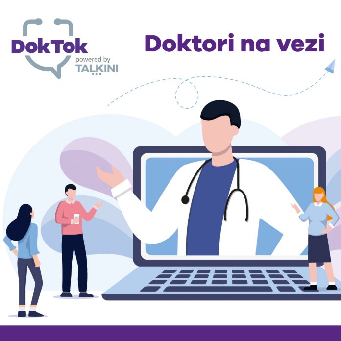 Građani širom Srbije imaće priliku da od 27. aprila tokom trajanja vanrednog stanja besplatno obave brze i lake konsultacije sa lekarom putem DokTok-a, prve platforme za onlajn medicinsko savetovanje. Platforma je namenjena svim sugrađanima koji nemaju simptome novog koronavirusa, ali im je potreban savet lekara u vezi sa opštim zdravstvenim stanjem ili psihološka podrška, a obavljaće se putem 15-minutnih „jedan-na-jedan“ video, chat ili audio razgovora. Sve što vam je potrebno su internet i smart telefon ili računar.