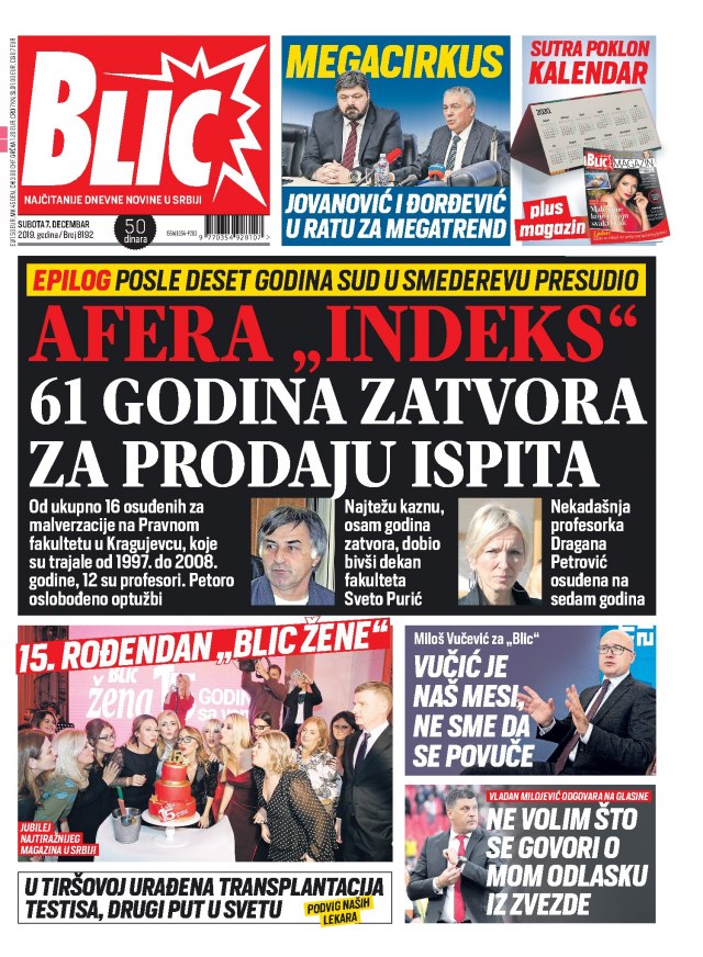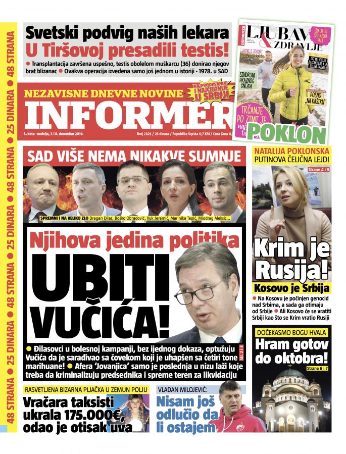 NASLOVNE STRANE DNEVNIH NOVINA: