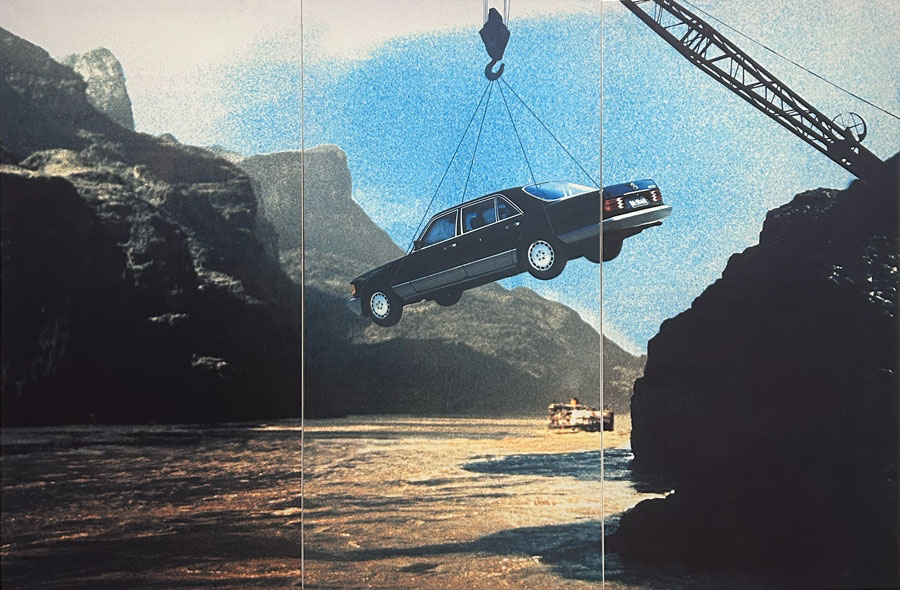 Mercedes-Benc je ušao na kinesko tržište osamdesetih godina, ubrzo postajući simbol statusa bogatstva i rastuće ekonomske moći zemlje u to vreme. Nekoliko godina kasnije, umetnik Žao Bandi je napravio delo, na kojem je prikazan automobil kako visi sa krana iznad reke Huanghe, često nazvane „majkom rekom“ kineske civilizacije. Ova reka ne samo da teče pored značajnih istorijskih mesta, već takođe predstavlja određeno svedočanstvo o otpornosti kineskog naroda pred brojnim katastrofama tokom vekova i o kineskom uverenju u moć jedinstva. Rad Žaoa Bandija ilustruje nadolazeći sukob između kolektivne, socijalističke etike Kine i sladunjave ali tako neodoljive privlačnosti konzumerizma. Ali posebno zanimljivo je to što umetnik s izuzetnom preciznošću predviđa konačni pad zapadnih statusnih simbola.