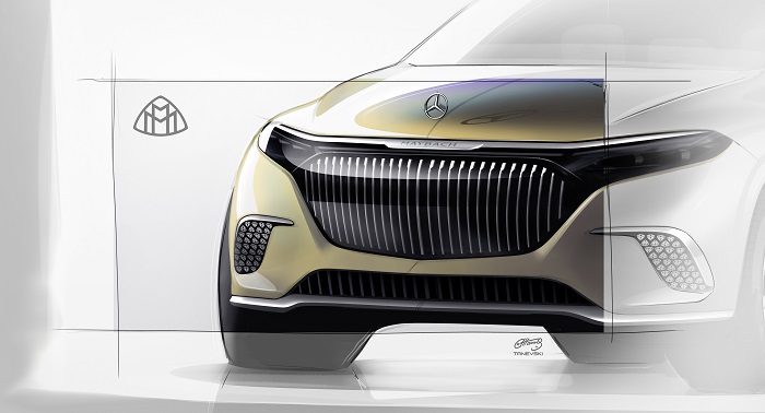 Mercedes-Maybach obogaćuje dinamičnu namenu dizajna EQS SUV-a iz Mercedes-EQ ekskluzivim elementima koji mu daju sopstveni karakter. Zvezda Mercedesa sedi ustoličena na haubi, definišući status. Prednji deo karakteriše crna ploča tipična za brend sa vertikalnim, hromiranim ukrasnim trakama koje daju trodimenzionalni izgled dubine. Veliki crni panel je po prvi put glatko zatvoren. Element visoke tehnologije za radarske senzore je potpuno integrisan i više nije vidljiv. Mogu se naći i hromirane, filigranske letvice na usisniku vazduha branika. Klasična slova MAYBACH diskretno su ugrađena u hromiranu dekorativnu traku, koja čini celinu sa kontinuiranom svetlosnom trakom standardnog DIGITAL LIGHT farova. Dezen Maybach sa nekoliko malih amblema brenda takođe se može naći u ukrasnim delovima sa strane branika. DIGITAL LIGHT dočekuje i oprašta se od vozača specijalnom svetlosnom predstavom. Kao još jedan znak pozdrava, animirana projekcija Maybach šare sija na sva četiri vrata.