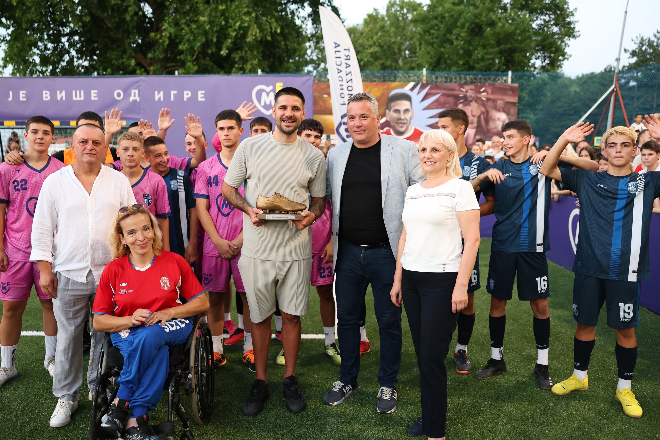 Zahvalnicu Aleksandru Mitroviću u vidu zlatne kopačke uručio je upravitelj Fondacije Mozzart Borjan Popović, koji je naglasio da akcija „Fudbal je više od igre“ ima velikog odjeka u celoj Srbiji i da su igrališta sa najsavremenijom podlogom svaki dan puna dece.