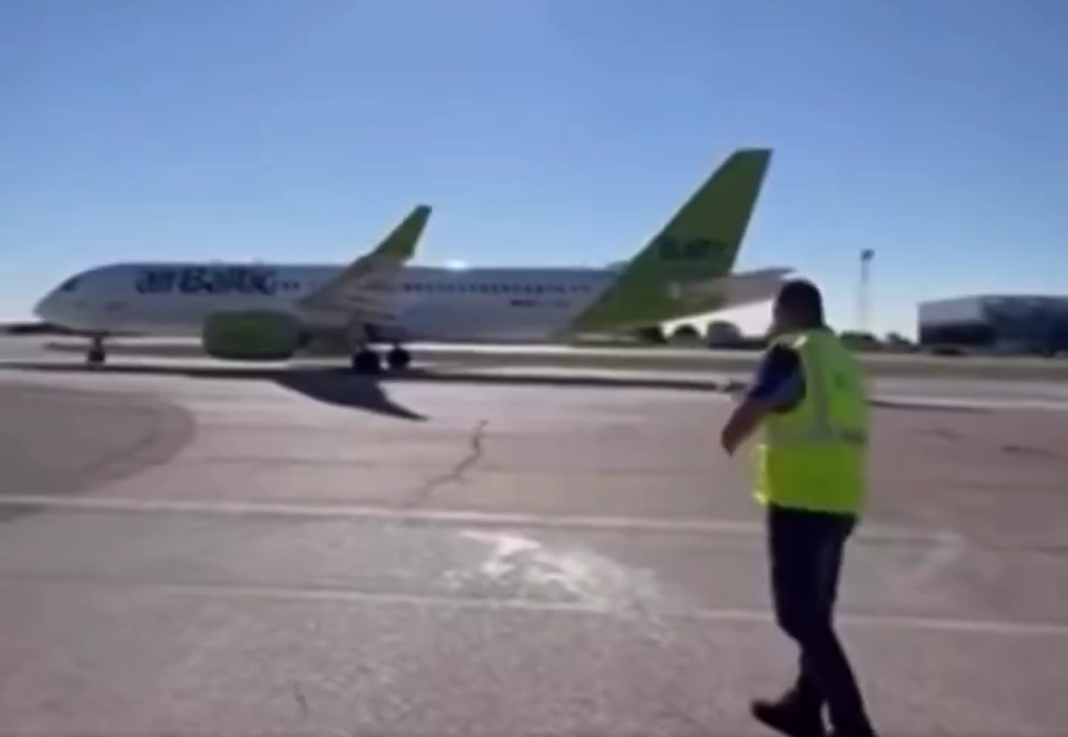 U daljni se vidi avion u kom se nalazi selekcija Srbije, koji se sprema za poletanje ka Rigi, gde će se od 27. avgusta do 14. septembra održavati Evropsko prvenstvo u košarci.