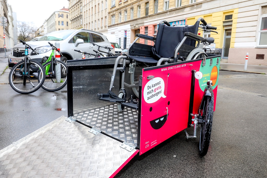 Pored neprestanog širenja mreže biciklističkig staza i sveobuhvatnog obrazovanja o mobilnosti, Grad Beč nastavlja da subvencioniše nabavku teretnih bicikala u gradskim četvrtima. Od aprila se može besplatno iznajmiti prvi teretni bicikl za prevoz invalidskih kolica. Ovaj tricikl može da preveze kolica širine do 73 cm, zajedno sa korisnikom. Ima posebno nisku transportnu platformu i rampu za ulazak, koja je ugrađena direktno u ram. Poseban sistem pojaseva osigurava da su kolica i osoba u njima bezbedni tokom vožnje.