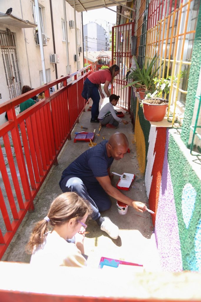 Predvođeni zamenikom ambasadorke Dominikom Otvejom, volonteri iz ambasade Velike Britanije i deca su se sjajno snašli u dosta drugačijem poslu. Na praktičan način bili su u prilici da saznaju više o urbanoj umetnosti i u kolektivnom izvođenju oslikaju svoj prvi mural.