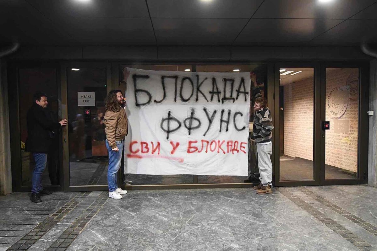 Oni su u zgradu fakulteta ušli u podne, kada je počeo protest. Tokom protesta su zauzeli sve holove i bukom prekidali nastavu u toj visokoškolskoj ustanovi.