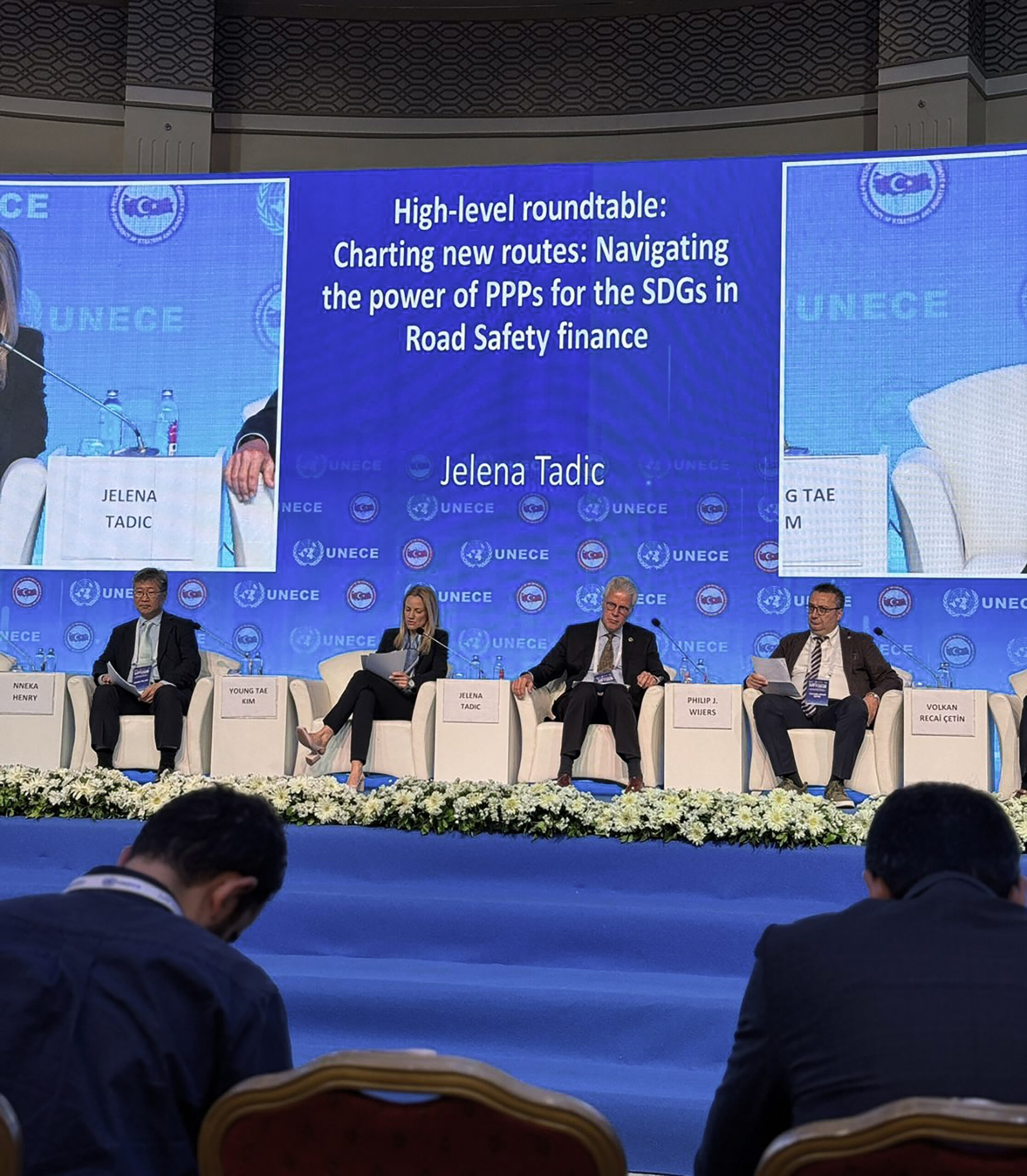 Na Okruglom stolu na visokom nivou „Kreiranje novih puteva: Upravljanje snagom JPP za ciljeve održivog razvoja u finansiranju bezbednosti na putevima“, učestvovala je izvršna direktorka PPP Investment Jelena Tadić, koja je istakla da su se javno-privatna partnerstva (JPP) pojavila kao efikasno rešenje koje na brojne načine oblikuje naše društvo. Ovaj pristup saradnje između javnog i privatnog sektora objedinjuje njihove snage, resurse, nove finansijske instrumente, tehnologije i „know-how” za rešavanje složenih izazova i pokretanje održivog razvoja. Javno-privatna partnerstva imaju potencijal da naprave revoluciju u načinu na koji se bavimo društvenim, ekonomskim i ekološkim pitanjima, naglasila je na sesiji Tadić.
