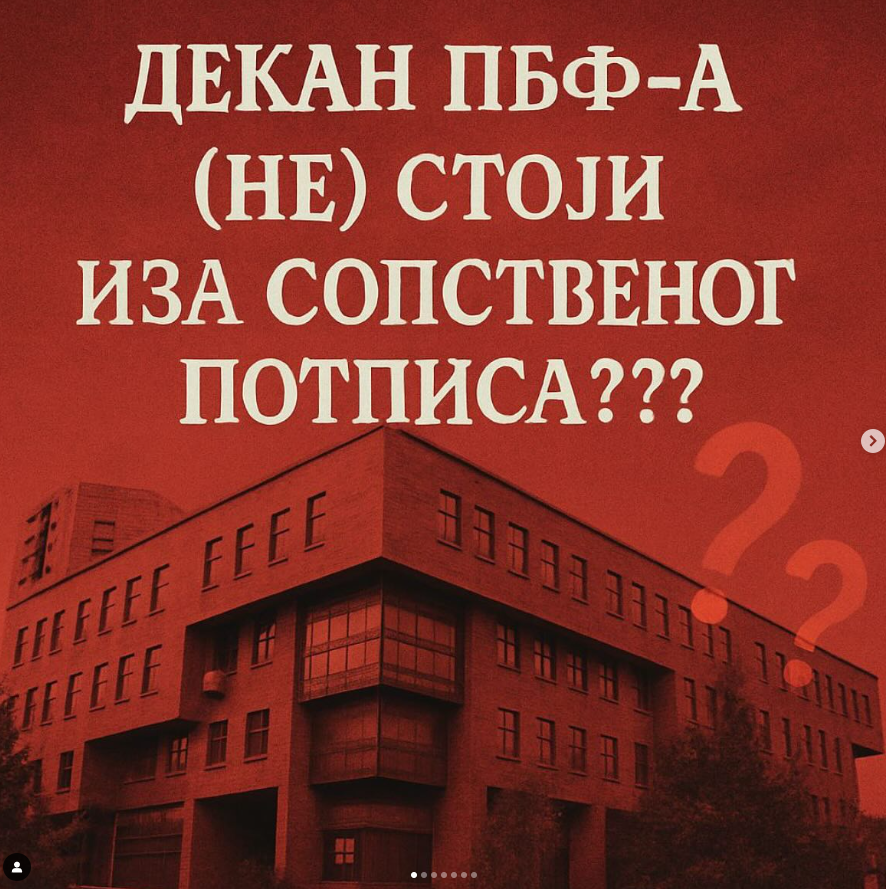 „Ukoliko dekan ne reaguje na ovakvo postupanje ili ga čak podržava, nije nam jasno na koji način onda smatra naše zahteve opravdanim, kao što je potpisao?“, pitali su studenti PBF-a.