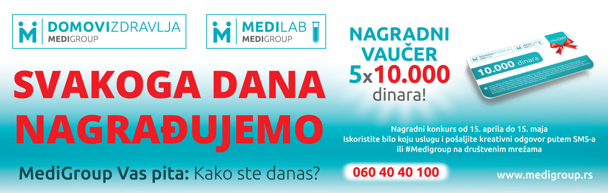 MediGroup je pripremio Nagradni konkurs i omogućio da osvojite jedan od 155 vaučera u iznosu od 10.000 dinara koje možete iskoristiti do kraja godine u svim Medigroup Domovima zdravlja i MediLab laboratoriji.