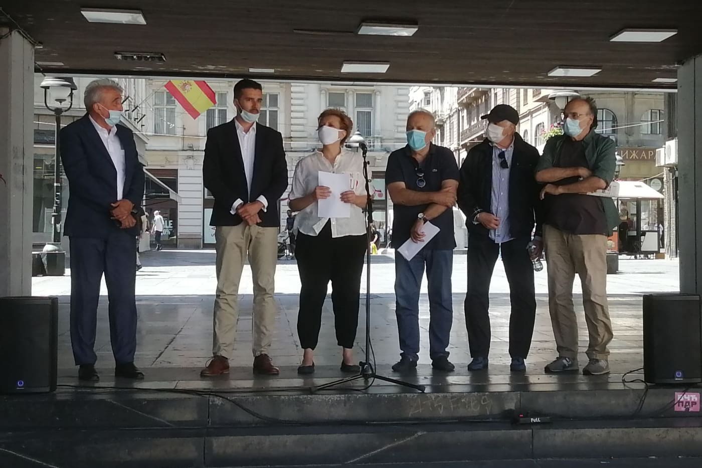 „Naše društvo je uništeno socijalnom nepravdom i sve većim socijalnim jazom. Ovo je država razorenih institucija, pretvorena u servis jedne stranke i jednog čoveka“, rekla je ona i dodala da u Srbiji nema demokratije i skupštine koja odražava volju većine gradjana.