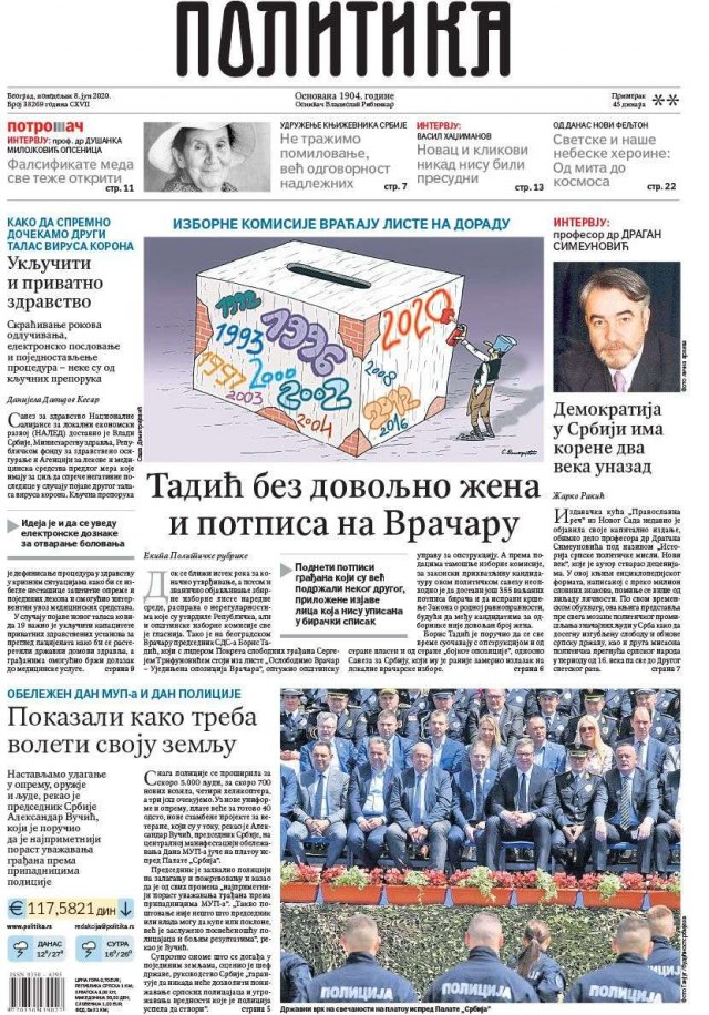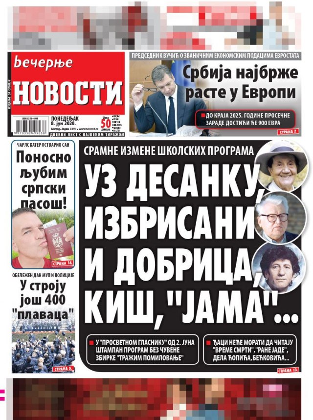 NASLOVNE STRANE DNEVNIH NOVINA:
