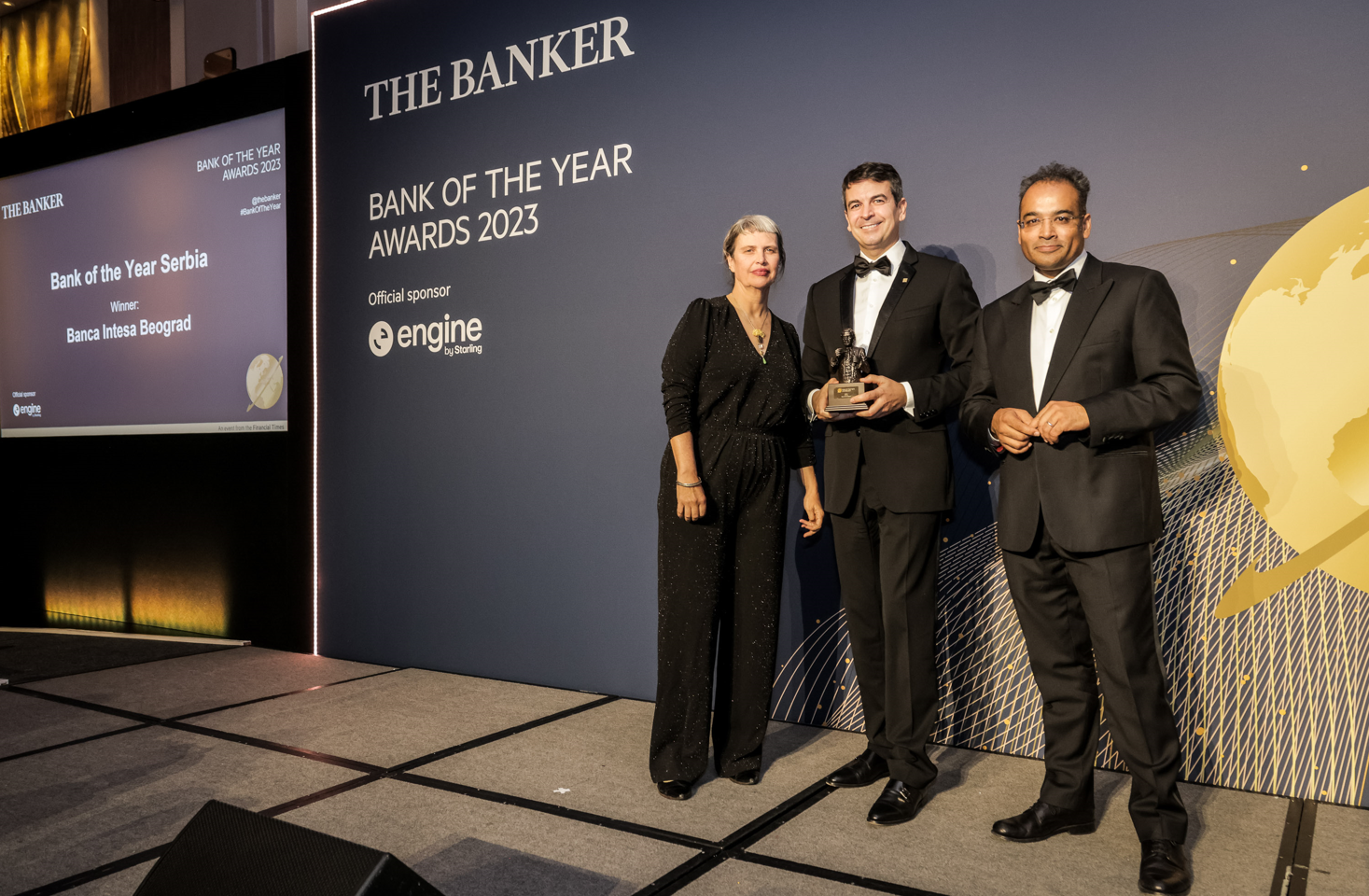 Banca Intesa, članica međunarodne bankarske grupacije Intesa Sanpaolo, osvojila je priznanje svetskog finansijskog časopisa The Banker za banku godine u Srbiji u 2023. godini.