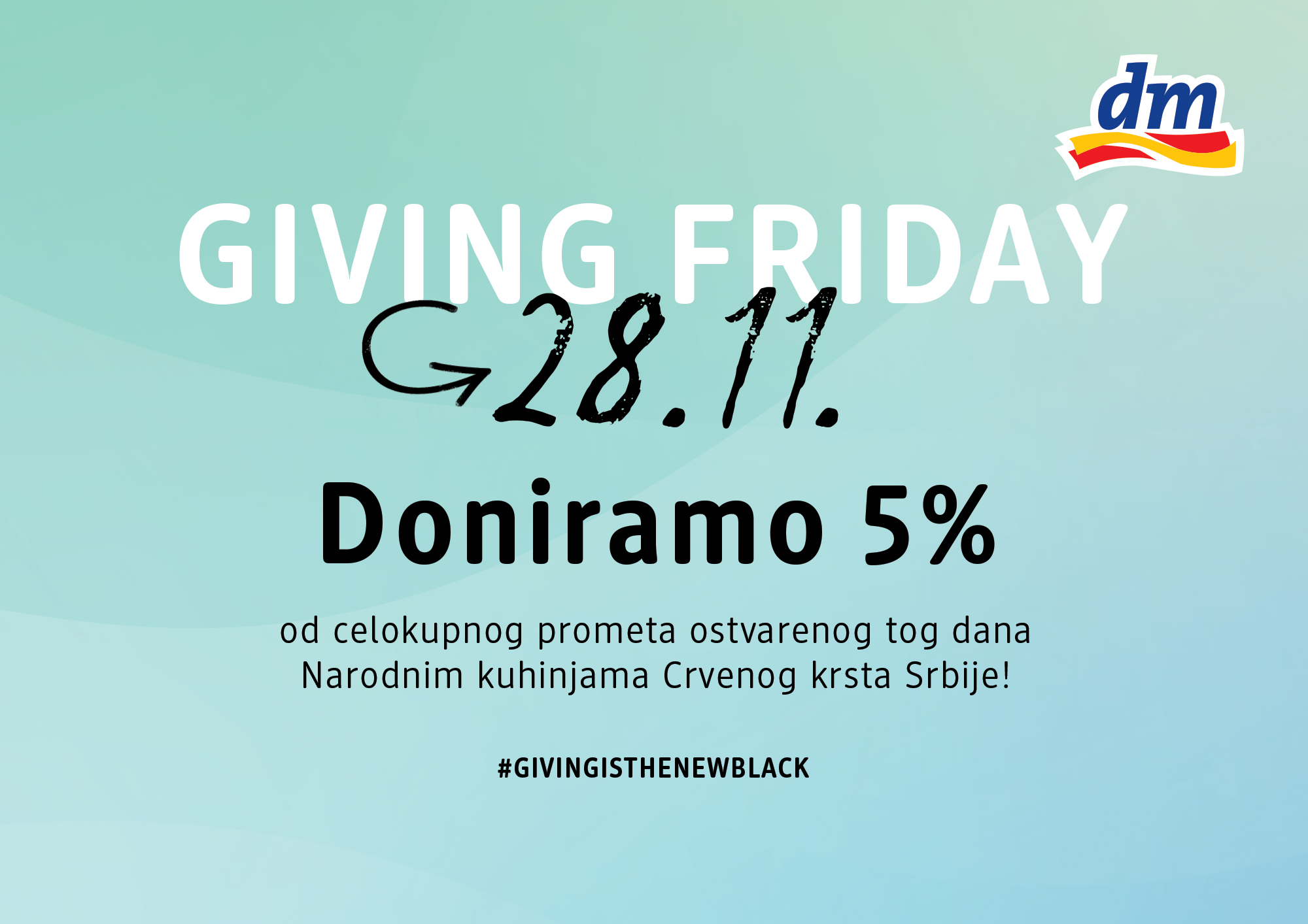 Dok Black Friday svake godine pokreće globalnu trku za popustima, dm drogerie markt i ove godine bira drugačiji put. Umesto jednodnevnih sniženja, dm sedmu godinu zaredom obeležava Giving Friday, dan posvećen solidarnosti i podršci ljudima kojima je pomoć najpotrebnija.