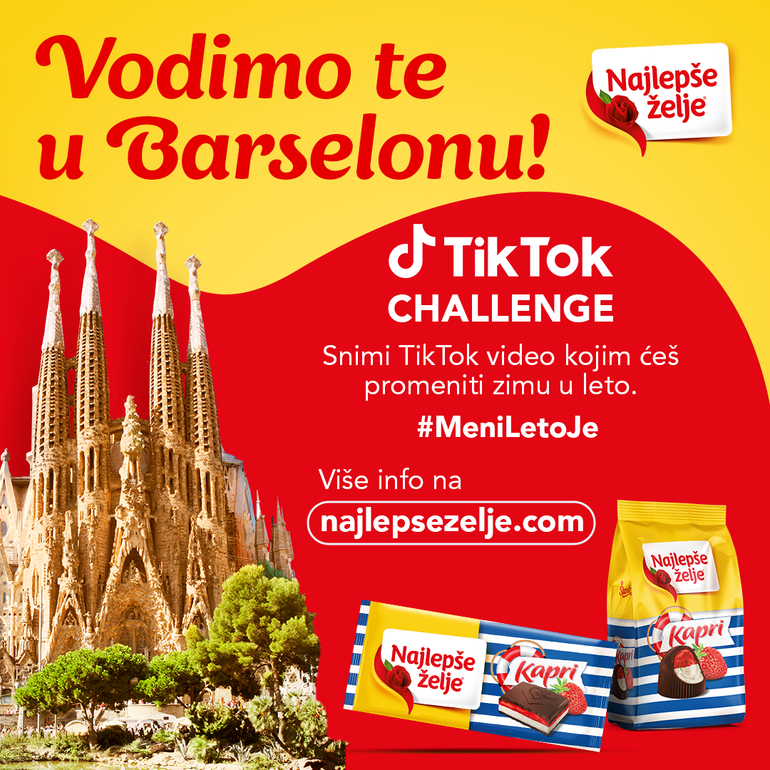 Najlepše želje su u saradnji sa kompanijom Frikom pokrenule kreativnu nagradnu aktivaciju na TikTok-u pod nazivom #meniletoje tokom kojeg ćete svi vi koji ste ljubitelji Najlepše želje Kapri čokolade imati priliku da na kreativan način pokažete da i kada hladno je, vama leto je.
