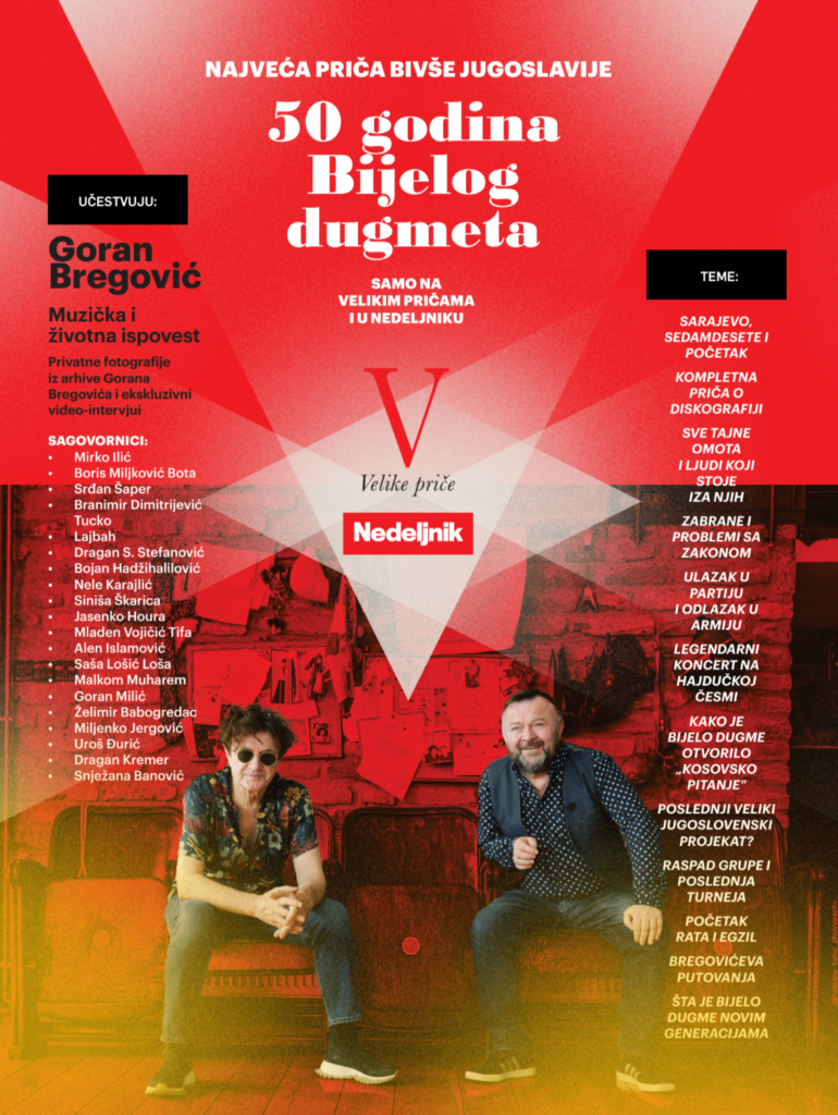 Pedeset koncerata u raznim delovima sveta, naravno i bivšeg jugoslovenskog „sveta“. O tom svetu u ekskluzivnom intervjuu koji će biti objavljivan narednih nekoliko sedmica u Nedeljniku, zajedno sa najvećim dosijeom o kultnoj jugoslovenskoj grupi i njenom uticaju na kulturu, društvo, politiku, jezik i pomirenje, govori Goran Bregović…