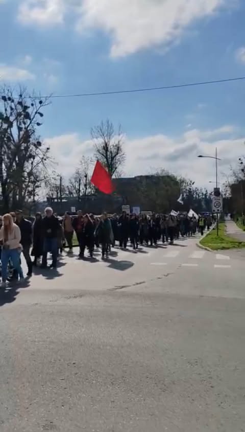 Pošto kolonu kod Instituta za nizijsko šumarstvo i zaštitu životne sredine niko nije dočekao, okupljeni su im vikali „Izlazite napolje“.