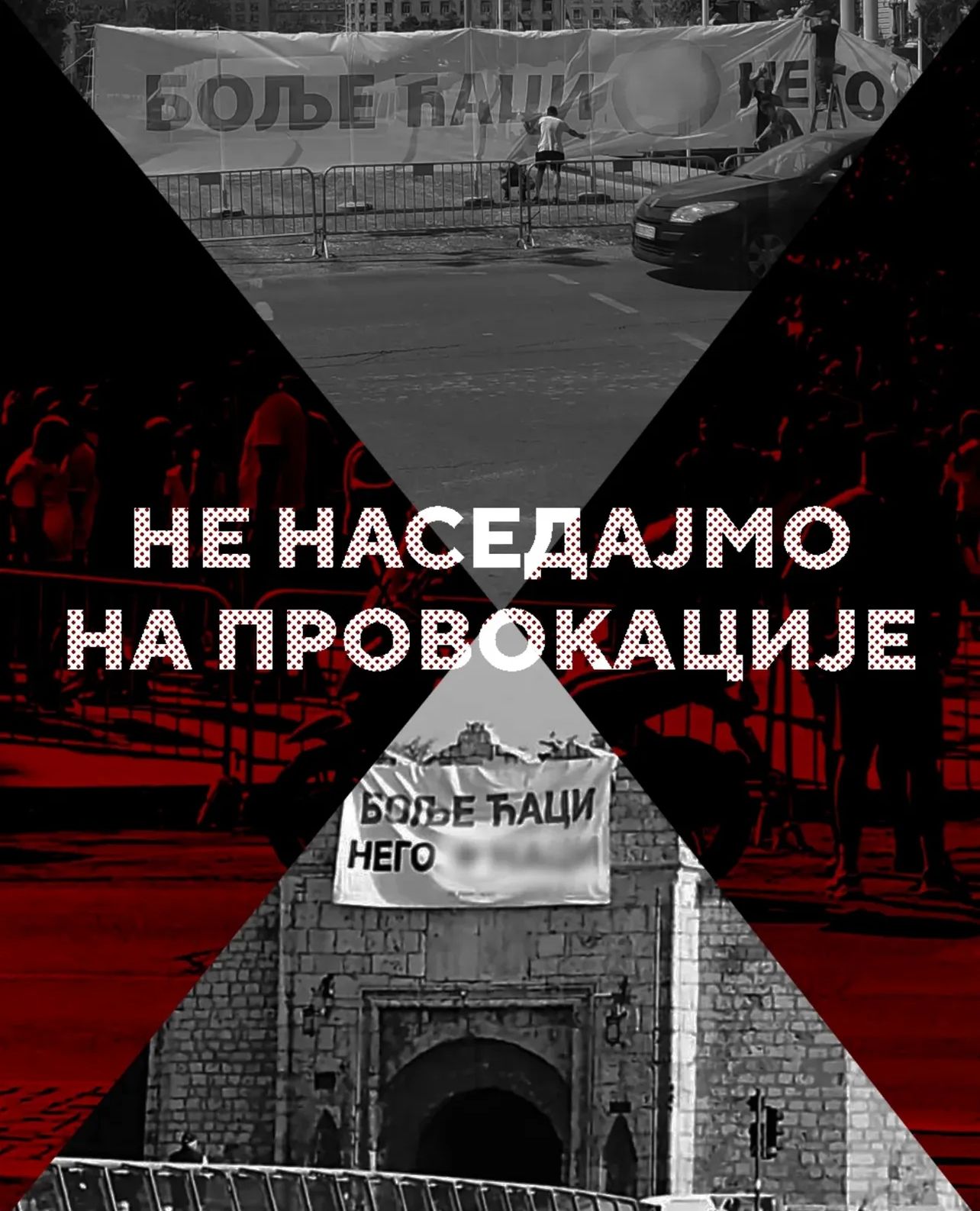 Podsetimo, danas je ispred Skupštime Srbije osvanuo baner sa porukom „Bolje Ćaci nego Naci“, uz kukasti krst.