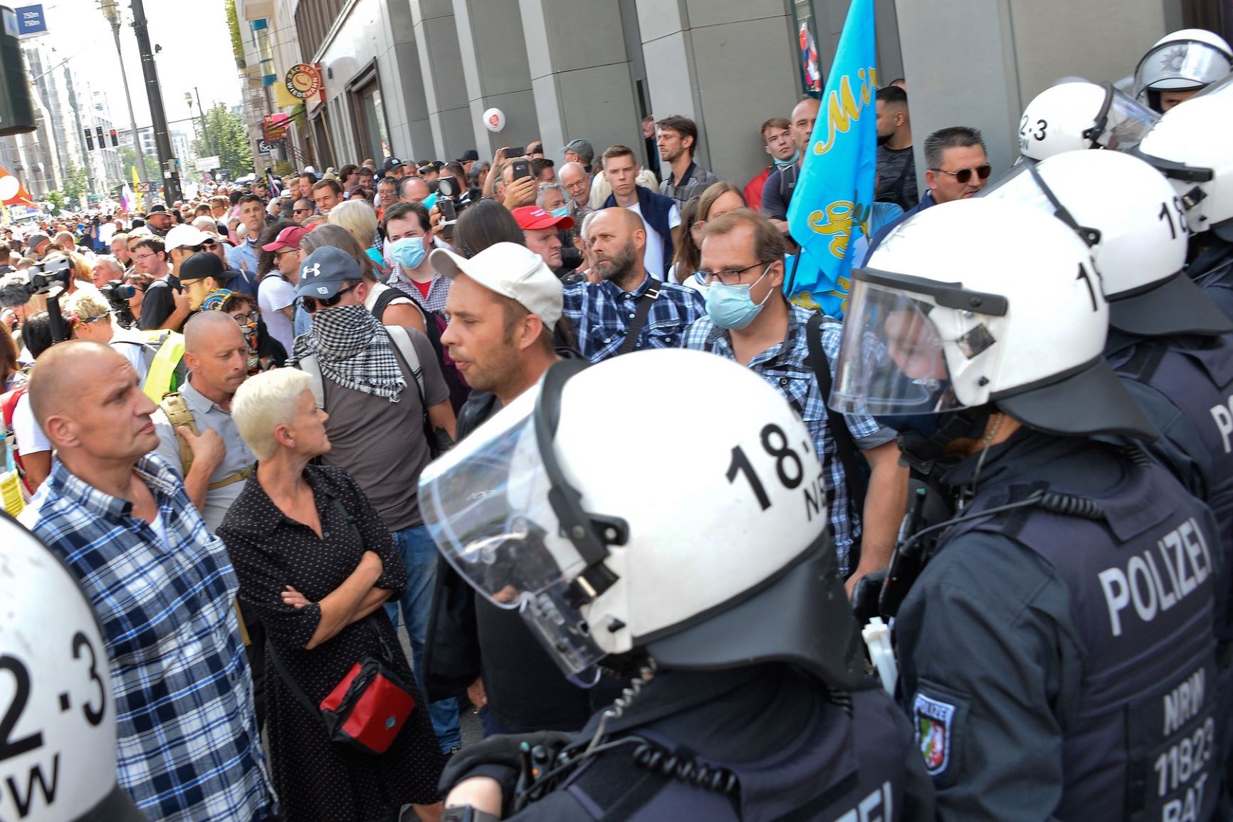 Velika većina prisutnih je protestovala mirno, ali situacija je ipak eskalirala nekoliko puta. Desničarski ekstremisti su ceo dan „pokušavali da provociraju“, kaže reporter RBB-a (Radio-televizija Berlin-Brandenburg), Olaf Sundemajer.