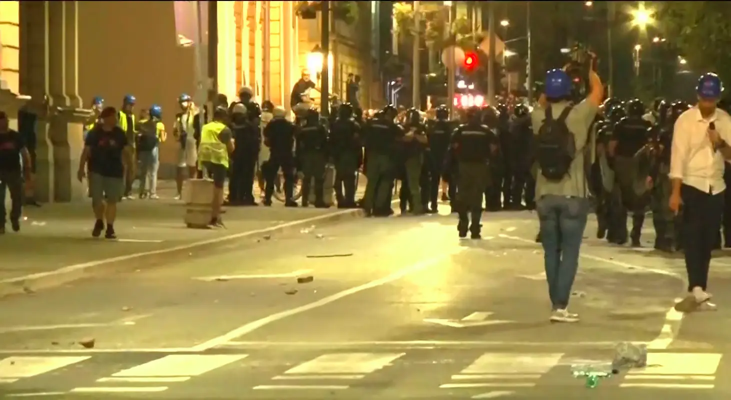 Kordon policije je onda krenuo u juriš kako bi rasterao demonstrante, što se i desilo u blizini Gradske uprave, kada su upotrebili i suzavac.