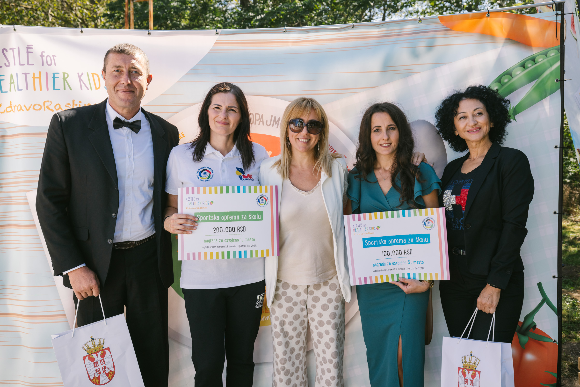 Na ovogodišnjem Nestlé ZdravoRastimo konkursu, 18 pobedničkih škola nagrađeno je laptopovima, kamerama, audio opremom i vaučerima za kupovinu sportske opreme, a dodela je upriličena u okviru Nestlé Sportskog dana u OŠ Branko Krsmanović u Sikirici kod Paraćina. Pored tradicionalnih sportskih aktivnosti, deca su imala priliku da povedu svoje pse i da se oprobaju u agiliti vežbama sa profesionalnim Purina instruktorima.