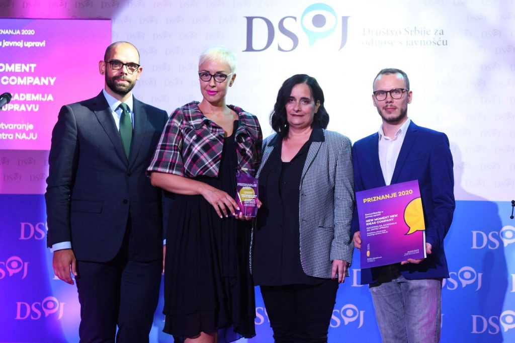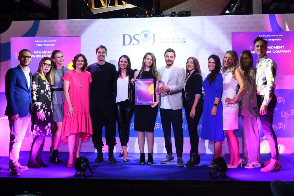 New Moment sinoć je proglašen PR Agencijom godine u kategoriji velikih PR agencija na tradicionalnoj godišnjoj dodeli nagrada Društva Srbije za odnose sa javnošću. Tom prilikom dodeljene su nagrade za najbolje komunikacijske kampanje, inicijative i projekte u 2019. godini, a svečana ceremonija se održala pod malo drugačijim okolnostima – preko live streama.