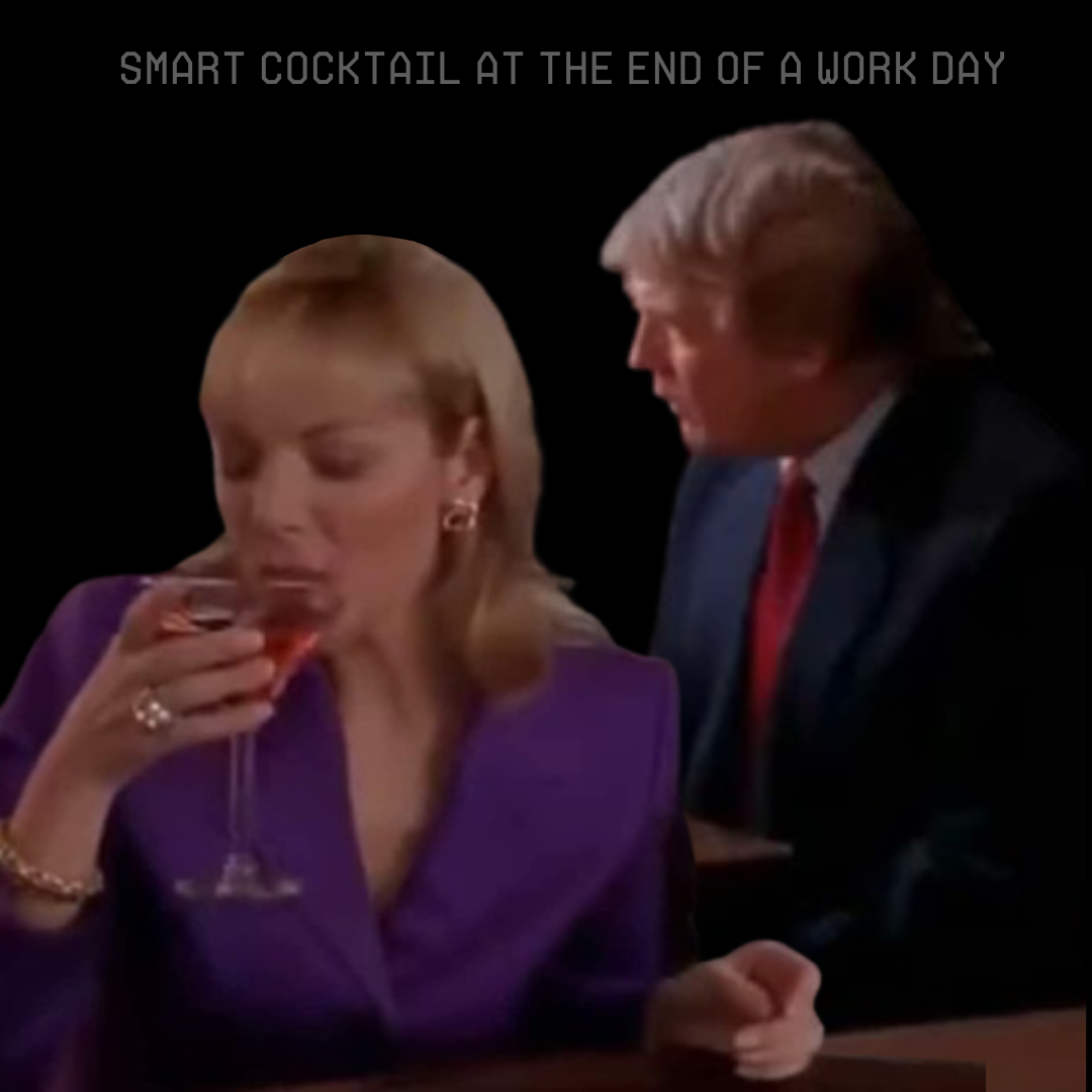 Tada već veliki njujorški poslovni tajkun, voljen u Holivudu, vlasnik mnogih poslovnih kula, autor bestselera „Umetnost dogovora“, ali i finansijer tadašnjih političara i samih predsedničkih kandidata, pojavljuje se između ostalog i u kadru iza Samante koja posle napornog dana pije svoj omiljeni koktel u jednom od njujorških barova.