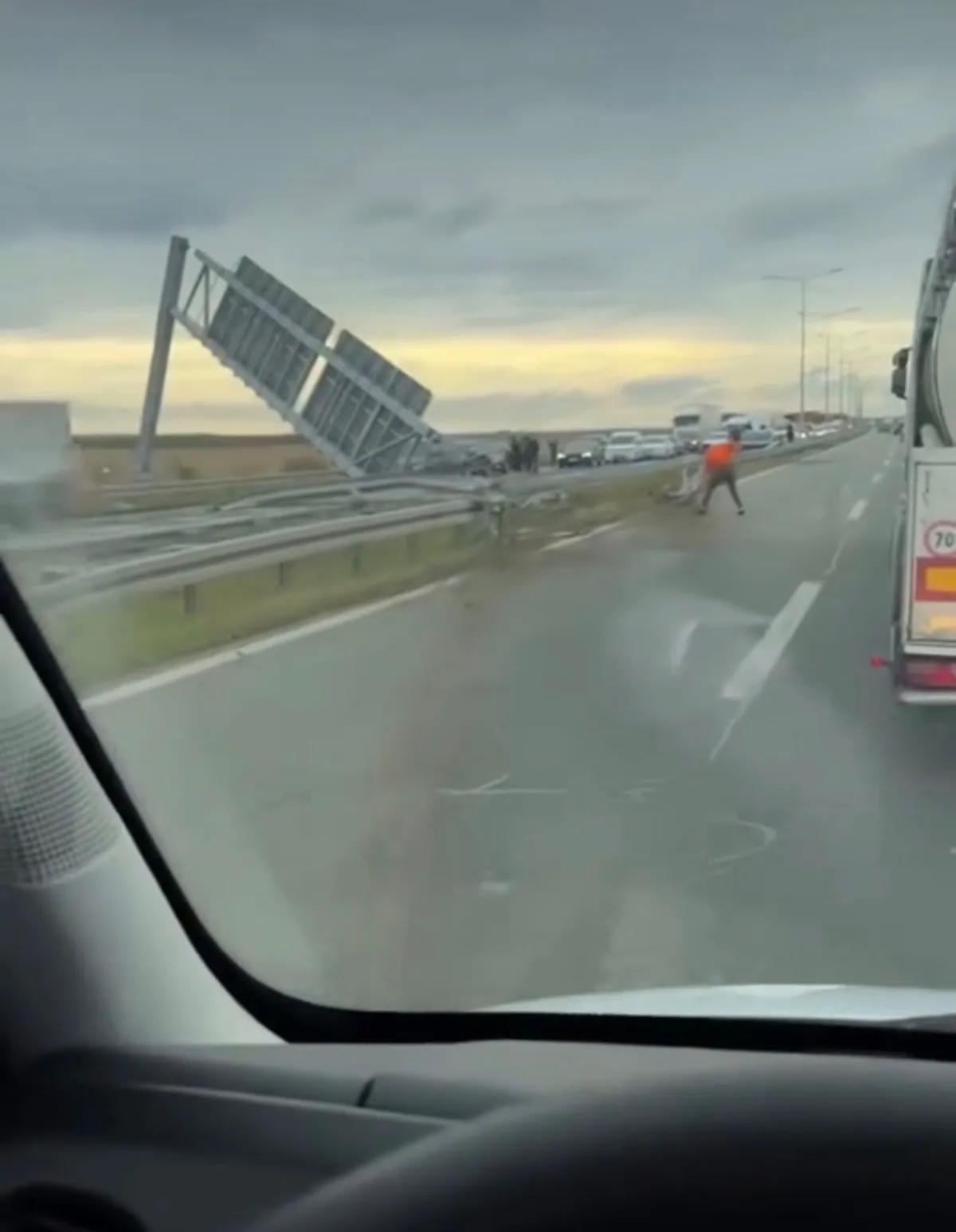 Prema nezvaničnim saznanjima, kamion je udario u znak, probio ogradu i preko trake za suprotni smer izleteo u njivu, piše 021.rs.
