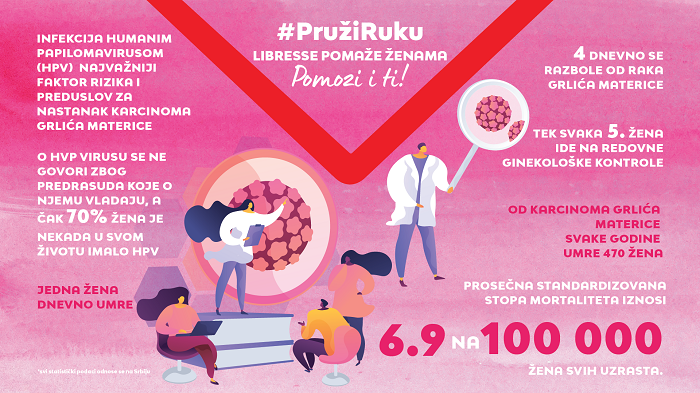 Nakon uspeha aktivacije #pričeiznutra, danas Libresse sa ponosom najavljuje svoju najnoviju kampanju #PružiRuku, kojom skreće pažnju na rak grlića materice, bolest koja se javlja često i pogađa veliki broj žena širom sveta. Iako u Srbiji najmanje jedna žena dnevno umre, a četiri se razbole od raka grlića materice, tek svaka peta žena ide na redovne preglede svake godine. I danas mnogi potcenjuju važnost redovnih ginekoloških pregleda, koji predstavljaju jednostavan način za rano otkrivanje ove bolesti i sprečavanje njenog daljeg napredovanja, čime se povećavaju šanse za uspešni oporavak.