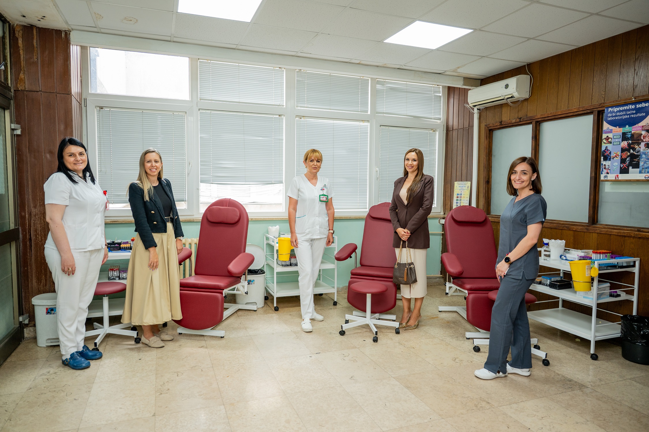 Iako na prvi pogled skromna, ova donacija predstavlja važan korak ka boljim uslovima za pacijente i osoblje. Stolice nisu samo komad opreme – one su simbol pažnje, dostojanstva i podrške tamo gde je najpotrebnija na početku svakog lečenja. Osim stolica za pacijente i stolica za laborante, donacija je obuhvatala i zamenu stolova za epruvete kao i radnih stolova za zaposlene, pa je tako kompletna laboratorija posle skoro tri decenije opremljena novim nameštajem.