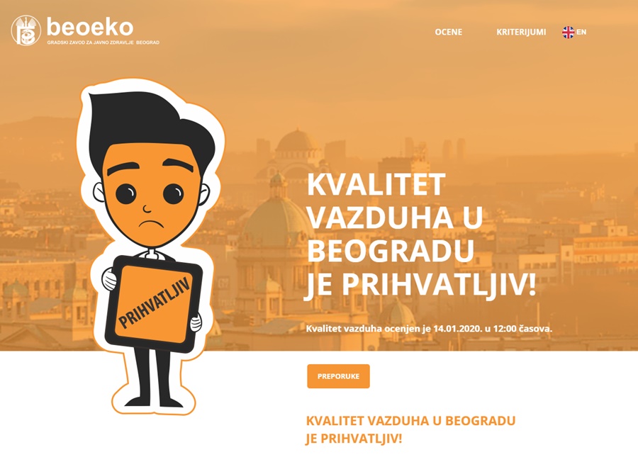 Beoeko, portal Gradskog zavoda za javno zdravlje Beograd ocenio je, oko 12 časova, vazduh u Beogradu kao prihvatljiv.