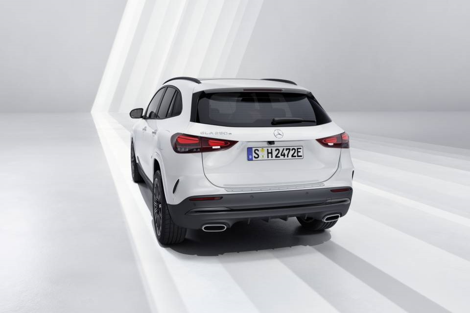 Dalje razvijeni plug-in hibridni pogon modela GLA 250 e (preliminarne brojke: kombinovana potrošnja goriva, ponderisana: 1,4-1,1 l/100 km; kombinovana emisija CO2, ponderisana: 31-24 g/km; kombinovana potrošnja električne energije, ponderisana: 23,8-21,1 kWh/100 km) daje rezultate sa povećanim performansama. Veći sadržaj korisne energije poboljšane visokonaponske baterije takođe dovodi do većeg električnog dometa. Snaga elektromotora je povećana za 5 kW na 80 kW dok je snaga sistema ostala ista. Na strani punjenja i dalje su dostupne tri opcije: pored standarda od 3,7 kW, baterija se sada opciono može puniti naizmeničnom strujom i do 11 kW. Dalje, moguće je punjenje baterije jednosmernom strujom do 22 kW. Ovo dodatno smanjuje vreme punjenja. Mercedes-Benz je takođe ažurirao vizuelizaciju hibridnih funkcija u glavnoj jedinici.