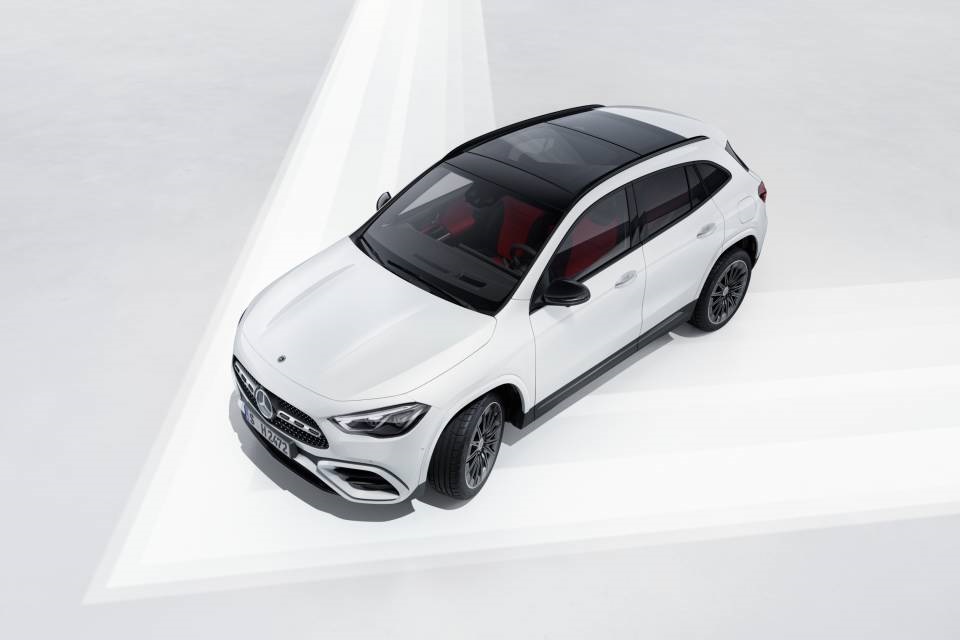 Mercedes-Benz značajno unapređuje kompaktni GLA SUV brojnim inovacijama i obimnijom standardnom opremom. Nova rešetka hladnjaka sa vertikalnim lamelama i horizontalnim rebrima naglašava moćan karakter. Pored toga, poklopac motora sa diskretno sugerisanim grebenima naglašava samopouzdani izgled. Redizajnirani prednji branik sa vizuelnom zaštitom od podvlačenja ukazuje na off‑road gene modela GLA.