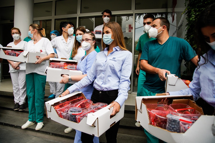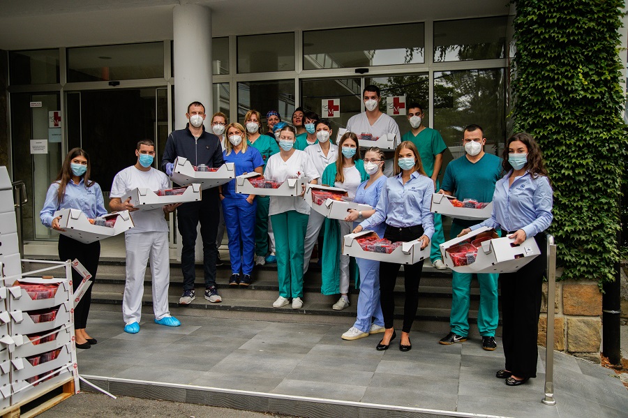 Donacija vitaminskih, osvežavajućih paketa za zdravstvene radnike Srbije, velika društveno odgovorna akcija koju realizuje kompanija Mozzart nastavljena je i danas i to u KBC Dragiša Mišović u Beogradu. Kamioni puni voća i organskih sokova danas su stigli u ovu bolnicu, a pomoć pri uručenju paketa hrabrim medicinarima pružio je i kapiten KK Partizan, Novica Veličković, koji je istakao plemenitost i snagu koju lekari, medicinske sestre, tehničari i svo osoblje pokazuju sada više nego ikada.