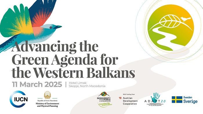 Dva velika projekta Međunarodne unije za zaštitu prirode (IUCN) – ADAPT 2.0 i Greening the Western Balkans (Za zeleniji Zapadni Balkan) – imaju za cilj da podrže efikasnije sprovođenje s stuba Zelene agende za Zapadni Balkan koji se odnosi na očuvanje prirode. Ovi projekti fokusireće se na podršku isaradnju sa nadležnim institucijama, stručnjacima i organizacijama civilnog društva kako bi se ojačali regionalni naporimi za očuvanje biodiverziteta i unapređenj otpornosti na klimatske promene.Oba projekta promovisana su ove nedelje na regionalnoj konferenciji koju su u Skoplju organizovali IUCN regionalna kancelarija za Istočnu Evropu i Centralnu Aziju (IUCN ECARO) i Ministarstvo zaštite životne sredine i prostornog planiranja Severne Makedonije.