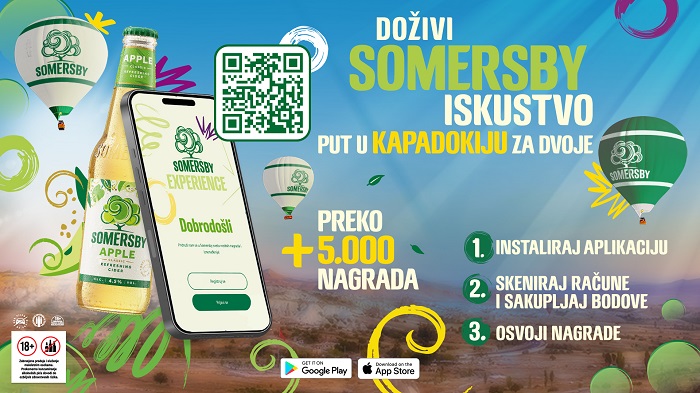 Dobro poznati sajder, iz portfolija kompanije Carlsberg Srbija, Somersby, nedavno je lansirao aplikaciju Somersby Experience, koja korisnicima donosi osvežavajuće izazove, interaktivni sadržaj i više od 5000 vrednih nagrada. Aktivacija se sastoji iz tri talasa, a svaki od njih donosi novi set nagrada, uz jednu glavnu: nezaboravno putovanje u Kapadokiju za dvoje. Trenutno traje drugi talas, donoseći nove izazove i nagrade, dok aplikacija funkcioniše po principu: skeniraj račun, sakupljaj poene, osvoji nagrade i dostupna je za sve Android i iOS korisnike.