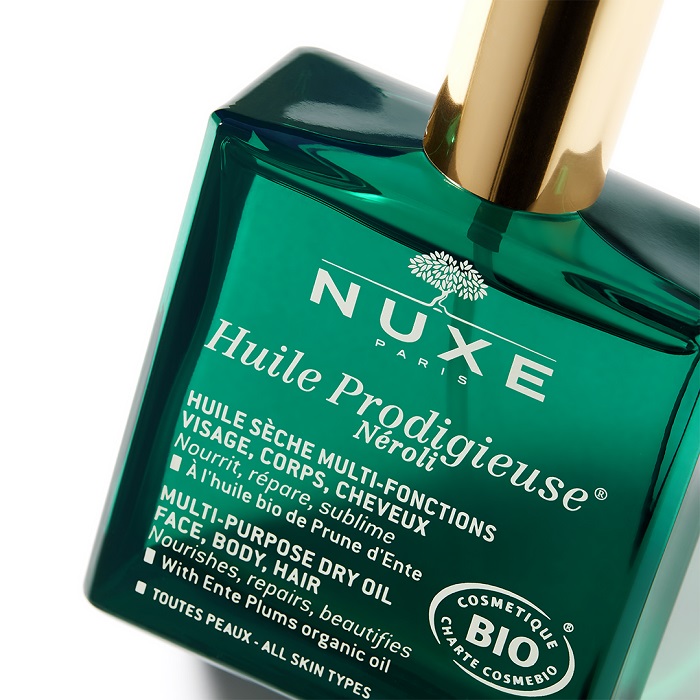 Francuska kozmetika Nuxe poznata po svojoj liniji Huile Prodigieuse® predstavlja inovaciju svog poznatog suvog ulja, koja kombinacijom svih mirisnih nota pruža divan miris – neroli koji umiruje i pruža osećaj komfora. Ovo novo sertifikovano organsko suvo ulje je 100% prirodnog porekla koje kožu i kosu čini hidriranom, regenerisanom i mekanom.